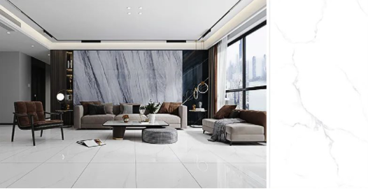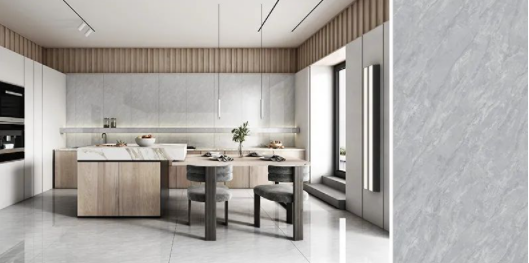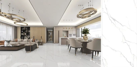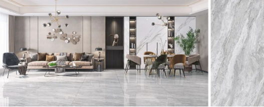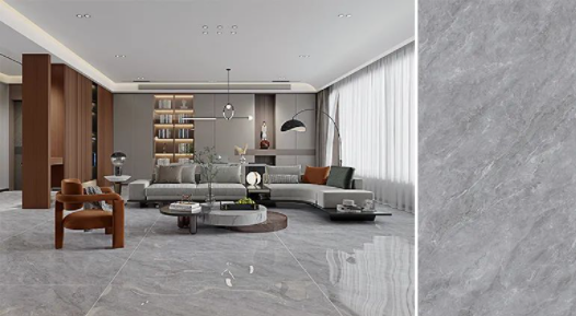 樓蘭灰,通透的理石紋磚面泛起粼粼波光,如同陽光照耀下的冰川般干凈純粹,在不動神色間展現(xiàn)出高貴精致的磅礴氣勢。
