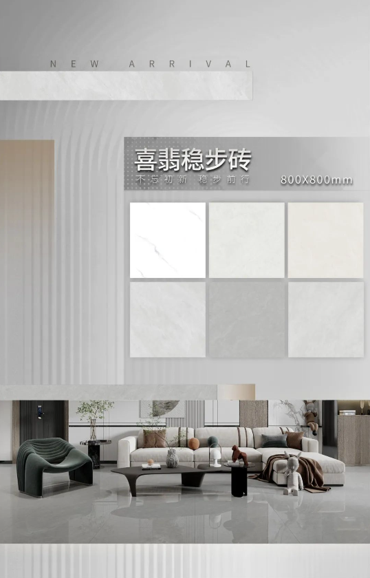 ▲喜翡穩(wěn)步磚-JHCNM8LW04A蘭斯灰-800x800mm(地面)