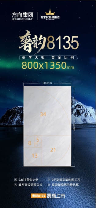 800x1350MM規(guī)格,長寬最接近黃金比例(0.618),實(shí)現(xiàn)墻地通鋪——“2片滿足層高,5片滿足客廳深度”,整體視覺更和諧舒適,詮釋高階空間美學(xué)。