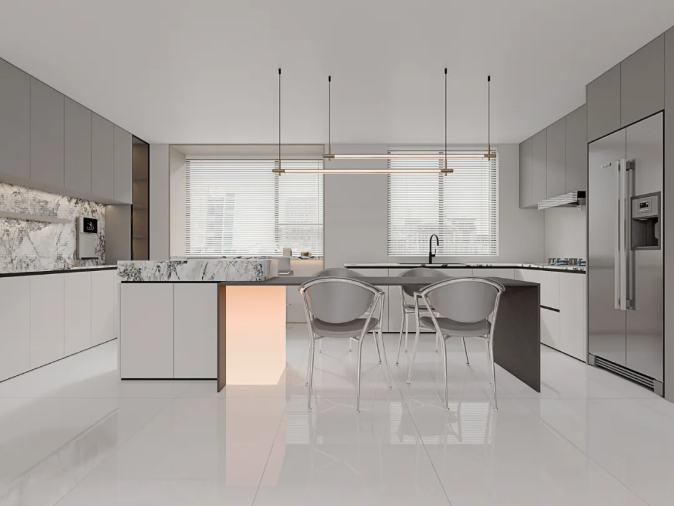 它是對通體大理石工藝的一次靜默升級,優化坯體白度,使磚面色彩更為純粹、紋理更具層次。98°全拋釉面,光感如絲綢般細膩,